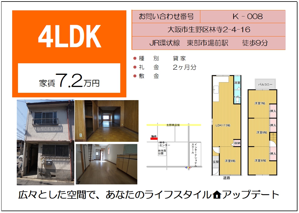 新着物件多数でました!!生野東3丁目売物件🏠生野東2丁目貸家・林寺貸家・店舗付住宅などお探しの方は是非内見をお早めに!!