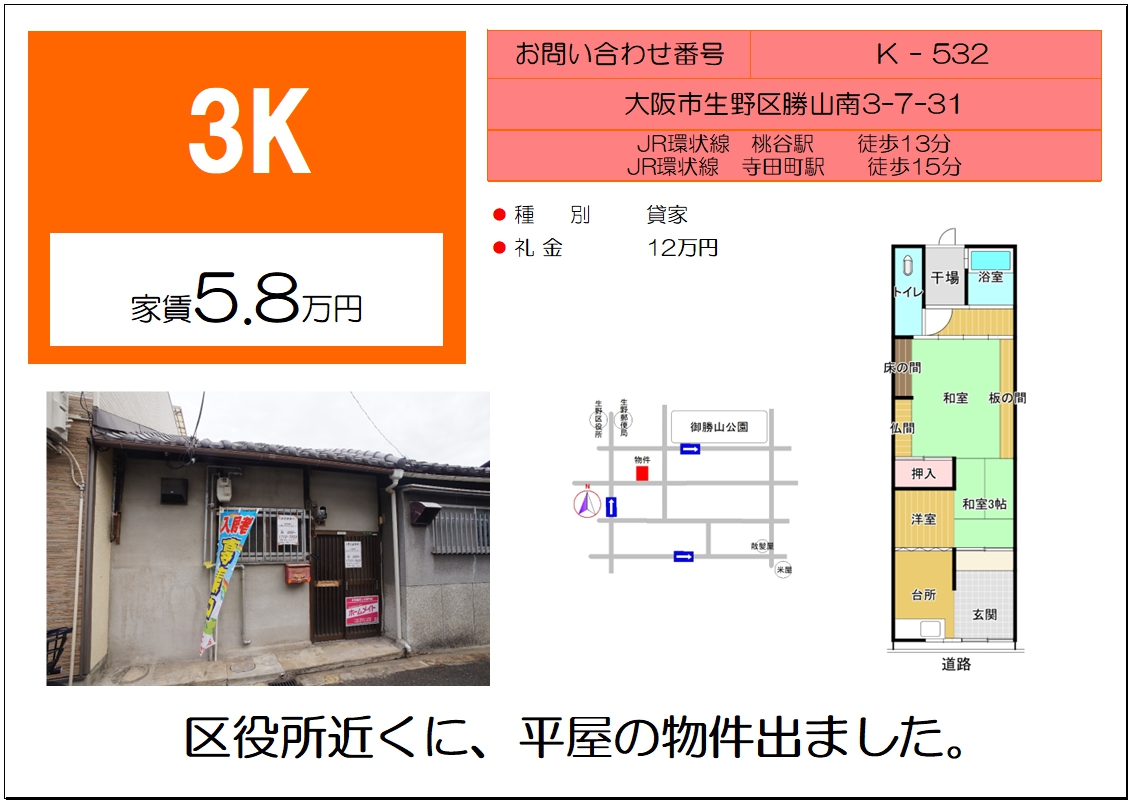 平屋・勝山南3 | 12万円・5.8万円・3K |
