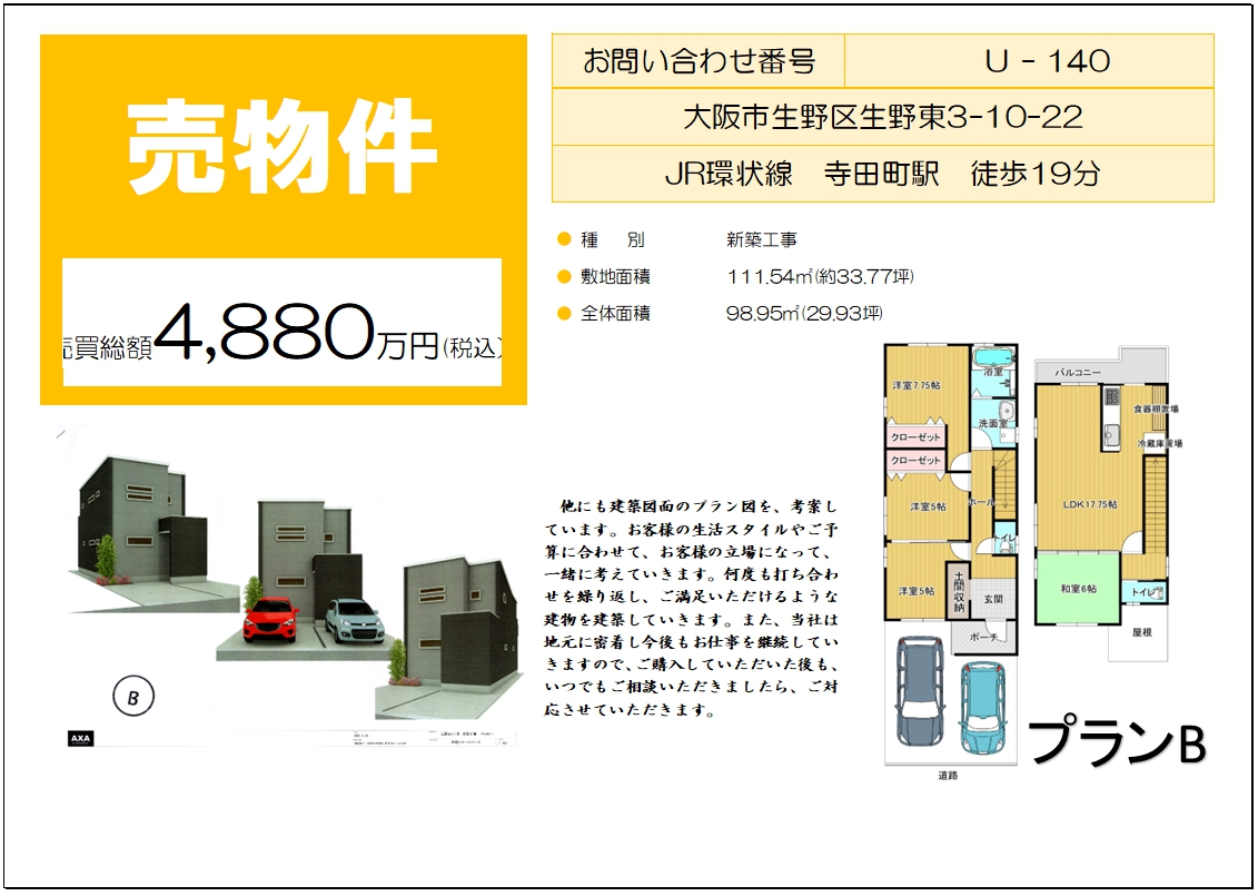 新着物件多数でました!!生野東3丁目新築売物件・林寺4丁目店舗付貸家・勝山南貸家・林寺駐車場などお探しの方は是非内見を!!