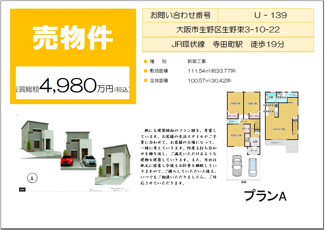 | 物件No. | 動画 | 種別・町名 | 分譲価格・構造・間取り |