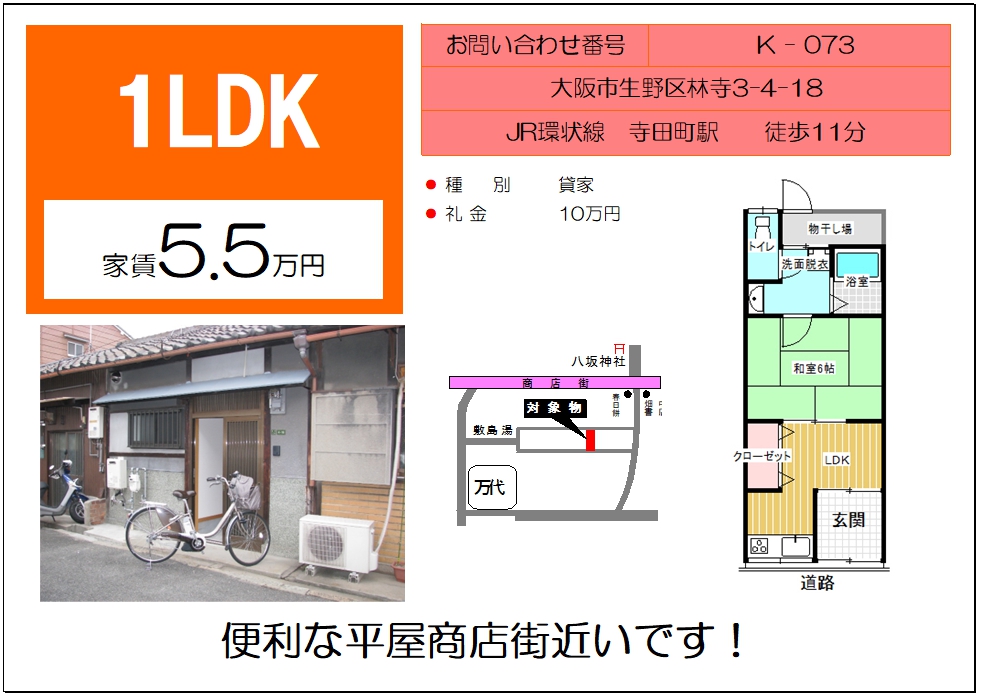 平屋・林寺3 | 10万円・5.5万円・1LDK | |